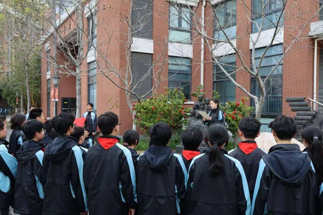 上海市光明中学组织师生代表前往龙华烈士陵园开展祭扫纪念活动。思政课教师将课堂搬进陵园,深情讲述曹顺标烈士19岁英勇就义的事迹。