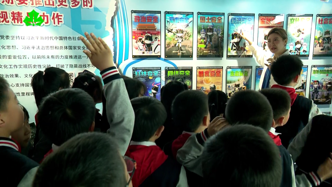 在四平电影院二楼,“新时代国安文化”展今天正式对外亮相。在老师的讲解下,同学们了解到,平日里国安主题的纪录片、动漫、谍战电视剧、电影等,都可以成为他们获取国家安全知识的渠道。在知名国安文化品牌《小安工作室》的展区里,黑猫警长国家安全系列公益微动漫、《神隐特侦组》和《尚宁的故事》等IP,凭借有趣生动的形象和表达,让国家安全意识扎根同学们的心中。
