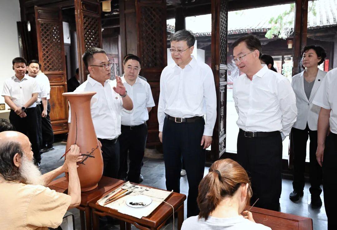 随后,代表团前往建水县西庄镇新房村,这里通过农文旅融合发展,留住了最美乡愁、实现了村民增收,当前正在上海方面帮扶下,联动周边村落打造乡村振兴示范带。沪滇领导察看村容村貌特别是村落历史建筑保护情况,听取建水古城保护和乡村振兴示范村融合发展工作介绍。陈吉宁说,非遗、古建以及古村风貌,承载着乡村记忆、延续着文化脉络,连同各具特色的自然资源禀赋,为乡村发展带来无限可能,是乡村振兴的重要组成部分。既要在传承保护上下更大力气,也要做好深入挖掘、活化利用的大文章。沪滇协作要结合文商旅体展联动发展,进一步深化研究,提升工作的针对性有效性,打造品牌、激活文旅、吸引客流,实现更可持续发展。要落实帮扶责任,深化对口协作,在发展好产业、解决好就业、开展好乡村建设治理等方面拿出更多实招硬招,让两地群众在乡村全面振兴中有更多获得感幸福感安全感。