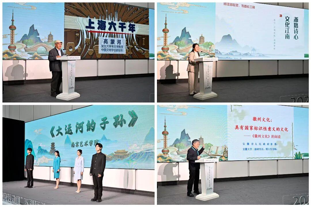 江南文化主题阅读微分享环节,复旦大学文博系高蒙河教授现场分享《上海六千年》一书的赏析心得,梳理上海六千年文明脉络;南京艺术学院学生吟诵《大运河的子孙》(节选),传递运河记忆;浙江师范大学人文学院教授于淑娟分享《浙路诗心,文化江南》,解读诗路浙江;安徽大学徽学研究中心研究员刘伯山赏析《徽派文化》,展现徽风皖韵。四场分享从城市脉络、运河记忆、诗路江南到徽风皖韵,立体呈现长三角文化图谱。