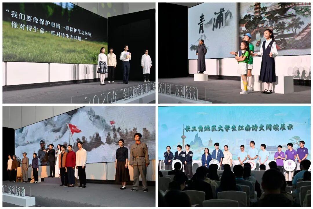 活动现场,东华大学及东华大学附属学校学生带来《守江南绿意 筑生态未来》党的创新理论学习展示。上海戏剧学院师生带来《永恒的记忆》,以戏剧方式启迪师生热爱阅读。上海青浦区小学生带来《水乡四时》,展现青浦区结合“上善”文化、凸显区域特色的阅读育人成果。同济大学、南京大学、浙江大学、中国科技大学学生代表带来精彩的诗词吟诵比赛,四校学子同台竞秀,激扬文字。