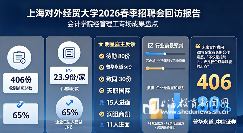 一场招聘会的落幕,不是就业服务的终点,而是深化育人工作的起点。近日,2026年春季“经管理工”专场招聘会顺利结束后,上海对外经贸大学会计学院并未止步于就业数据统计,而是创新组织48名学生志愿者组成专项回访团队,对22家参会企业开展一对一深度回访,最终形成详实的《企业回访分析报告》,实现就业服务与行业调研、自我教育的有机结合。