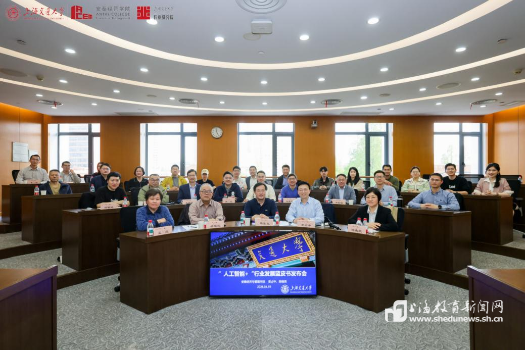 本网讯(记者 程媛媛)4月19日,上海交通大学安泰经济与管理学院主办、上海市科学学研究会与行业研究院共同协办的《2026年“人工智能+”行业发展蓝皮书》(以下简称“蓝皮书”)发布会暨专题研讨会在交大徐汇校区举行,来自学界、产业界和政策研究等领域的专家汇聚一堂,共同探讨人工智能驱动下的技术重构、产业变革与治理路径。