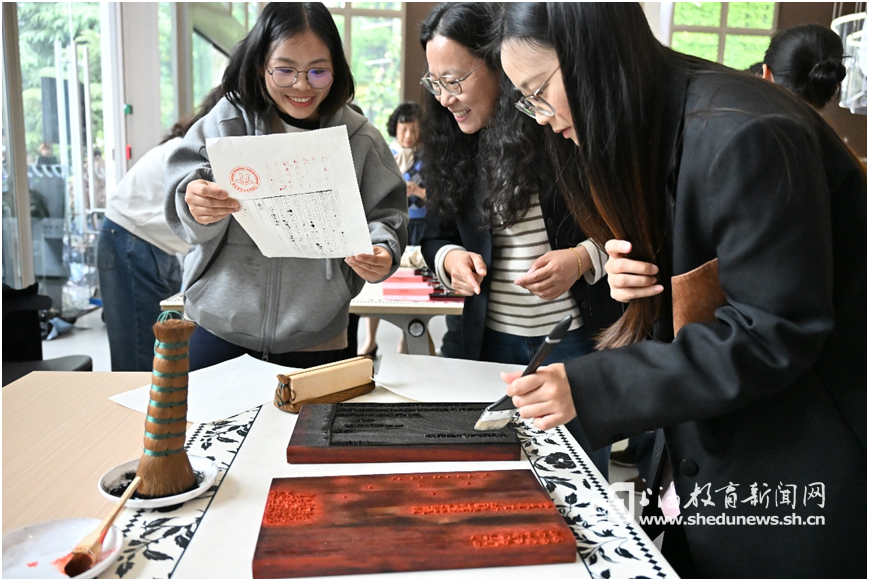开幕式当天,徐汇、奉贤两校区同步开展书香音乐竞猜、学思新书闪借、雕版刷印、古籍句读挑战、非遗漆扇体验、聊斋改编创作、春景书香手作、教工阅读一小时等线下特色活动,吸引广大师生踊跃参与,在沉浸式体验中感受传统文化魅力与阅读之美。