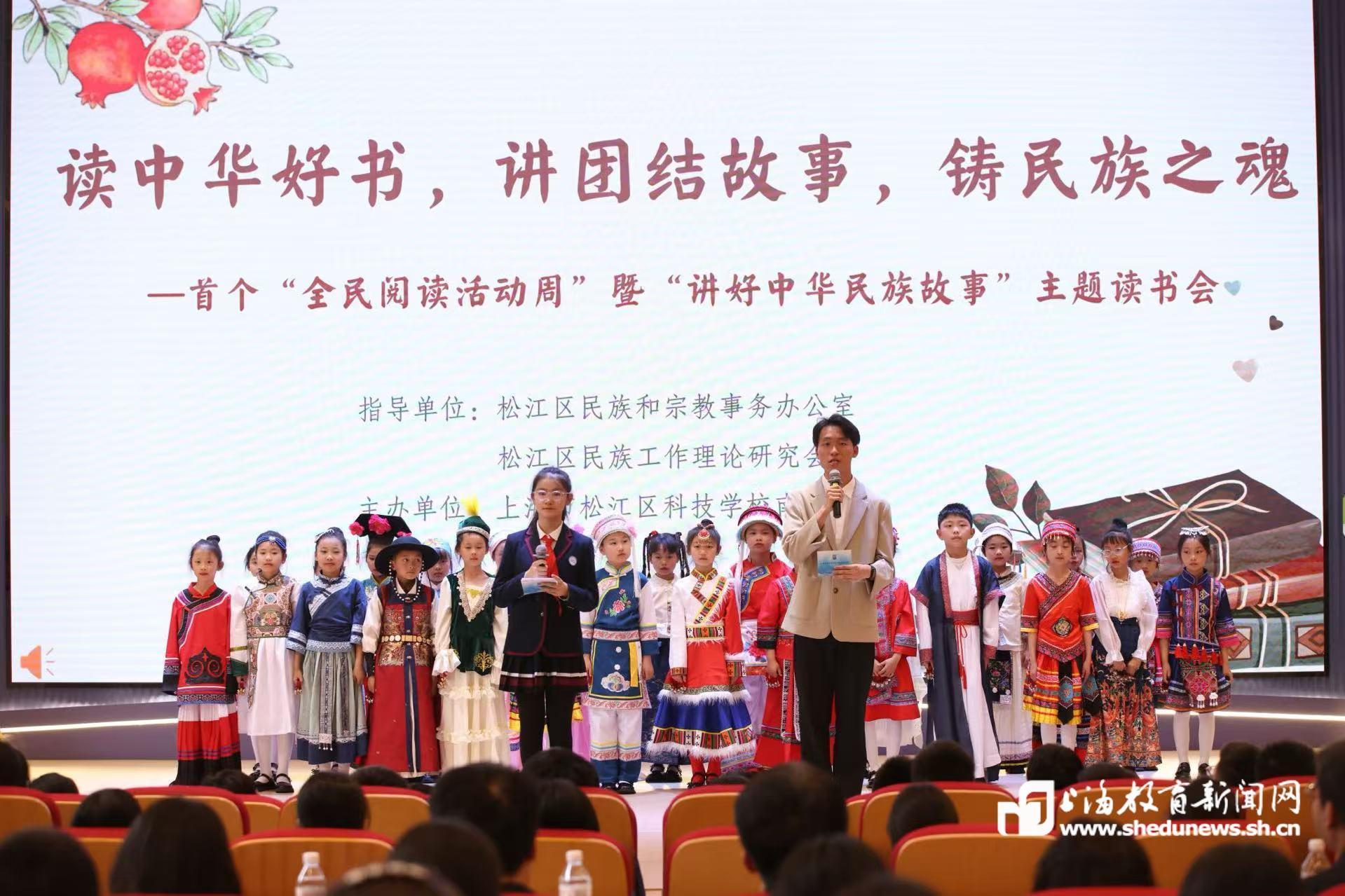本网讯(记者 程媛媛)4月23日,在第31个“世界读书日”到来之际,松江区科技学校南部分校的小剧场内,一场以“读中华好书,讲团结故事,铸民族之魂”为主题的读书会温暖上演。六年级的同学们用五个精心准备的故事表演,为全国首个“全民阅读活动周”献上了一堂别开生面的“思政课”。