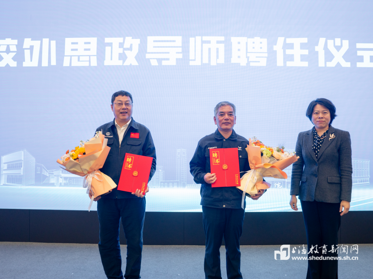 上海电机学院党委副书记、副院长李晓军向王曙群、王伟颁发了“校外思政导师”聘书。据介绍,这堂思政大课是上海电机学院将科创精神、工匠精神融入应用型人才培养的生动实践,也是学校深化红色工业文化赋能卓越现场工程师培养的典型举措。