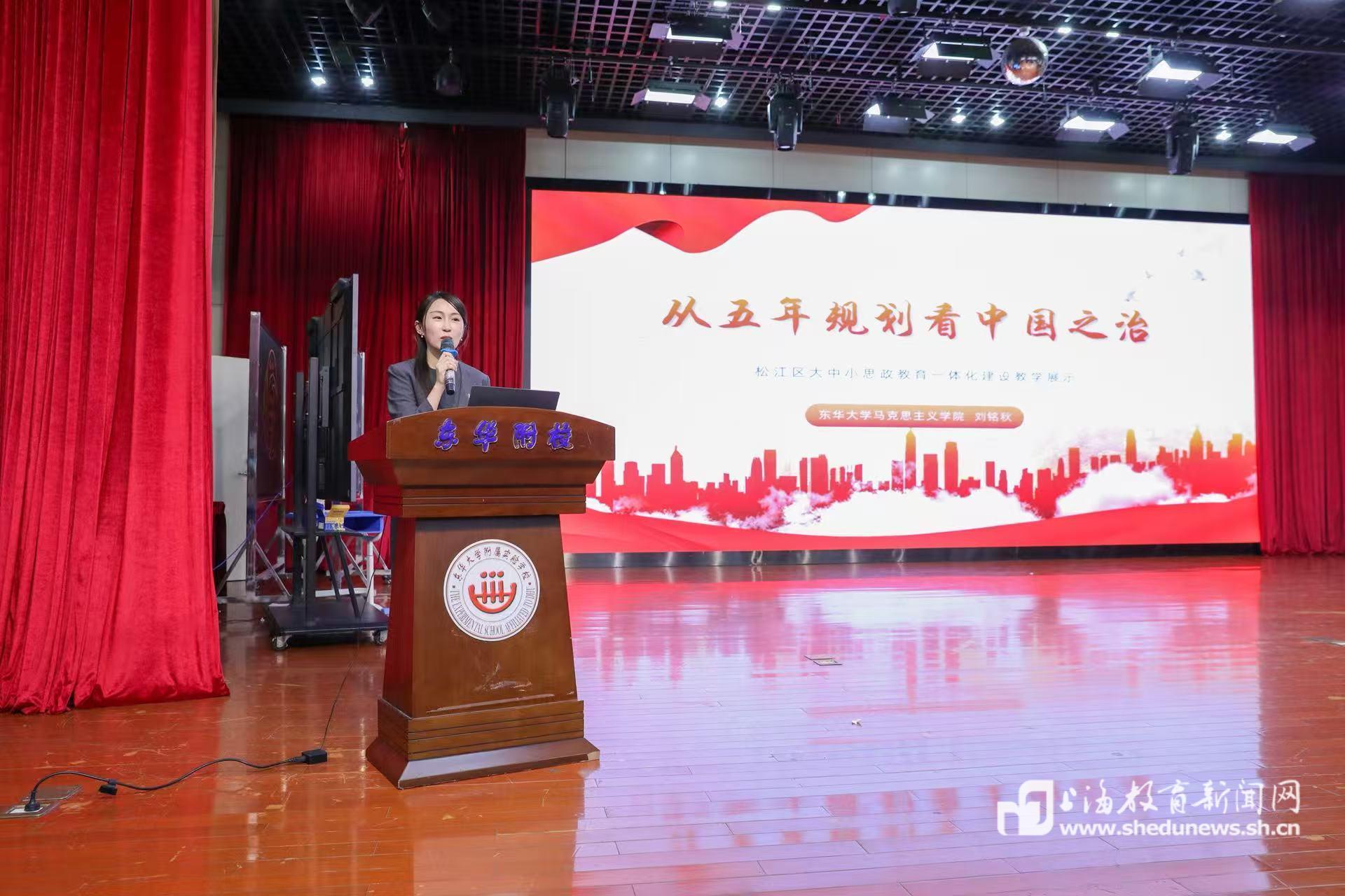 本网讯(记者 程媛媛)4月23日下午,“经天纬地 铸魂育人——松江区大中小学思想政治教育一体化建设联盟展示暨中小学思政学科阅读季活动”在东华附校举行。活动通过小学、初中、高中、大学四个学段围绕同一核心主题的课堂接力与深度融合展示,生动呈现了思政教育循序渐进、螺旋上升的一体化育人新格局。