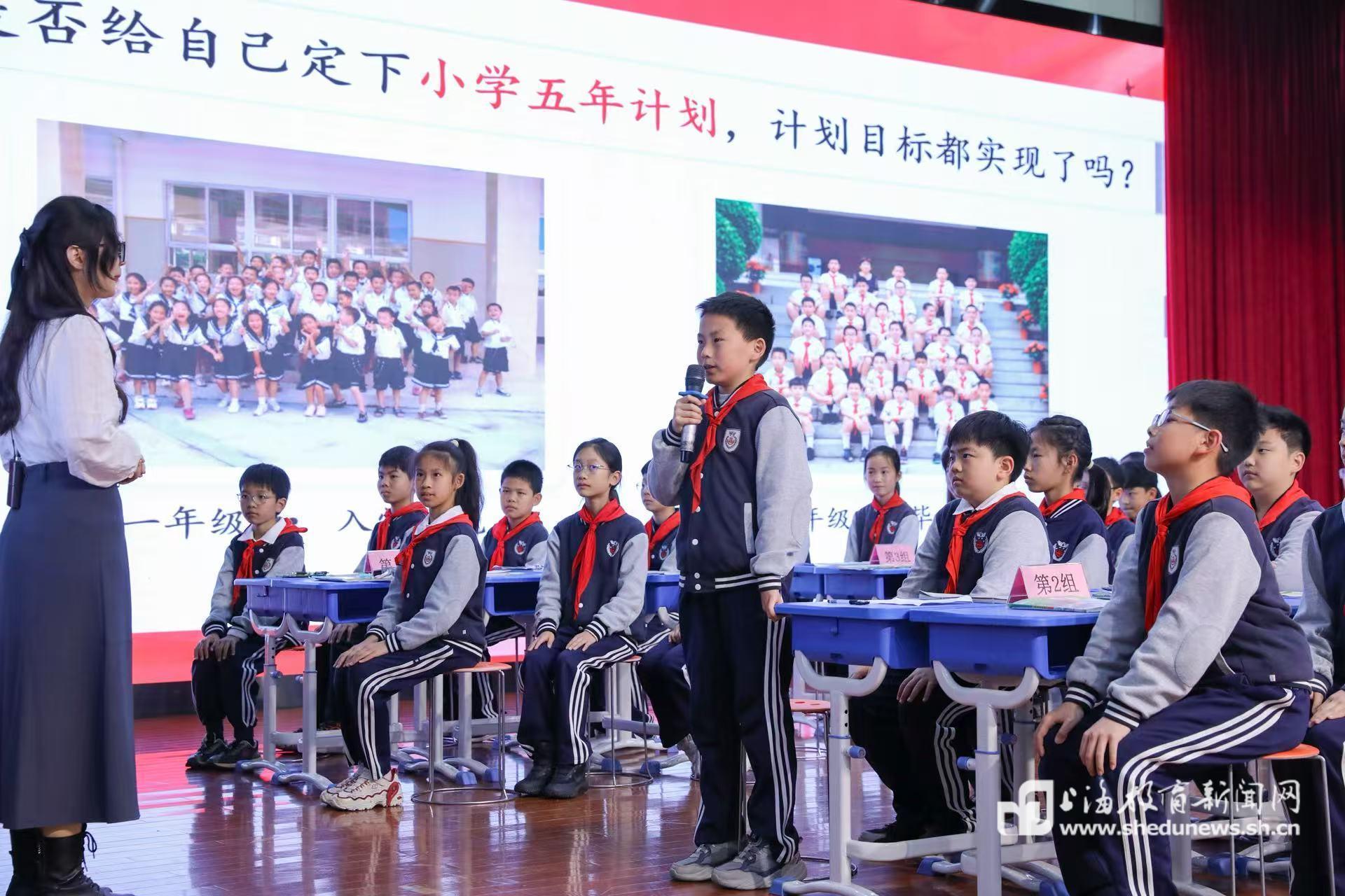 东华大学附属实验学校李丹婷老师执教的“小计划大蓝图——我与国家共成长”为这堂“大思政课”按下了启动键。本节课以“个人成长”与“国家发展”的关联为核心,借助成果汇报、情境感悟、交流分享等形式,通过个人五年计划回顾、调查家庭生活变迁、了解国家五年规划接力、体会国家制度优势等环节,引导学生直观感受国家五年规划的伟大成就,初步体会中国特色社会主义制度的优越性,增强民族自豪感与责任担当。