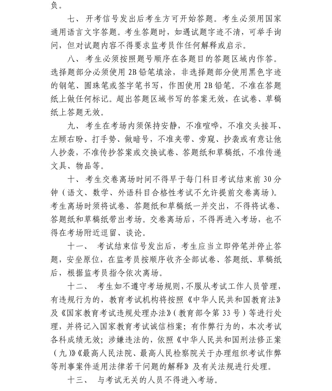 4.本次考试实行考点和考场“二次安检”。进入考点时,考生须服从安排、有序入场,接受考点工作人员的安全检查。
