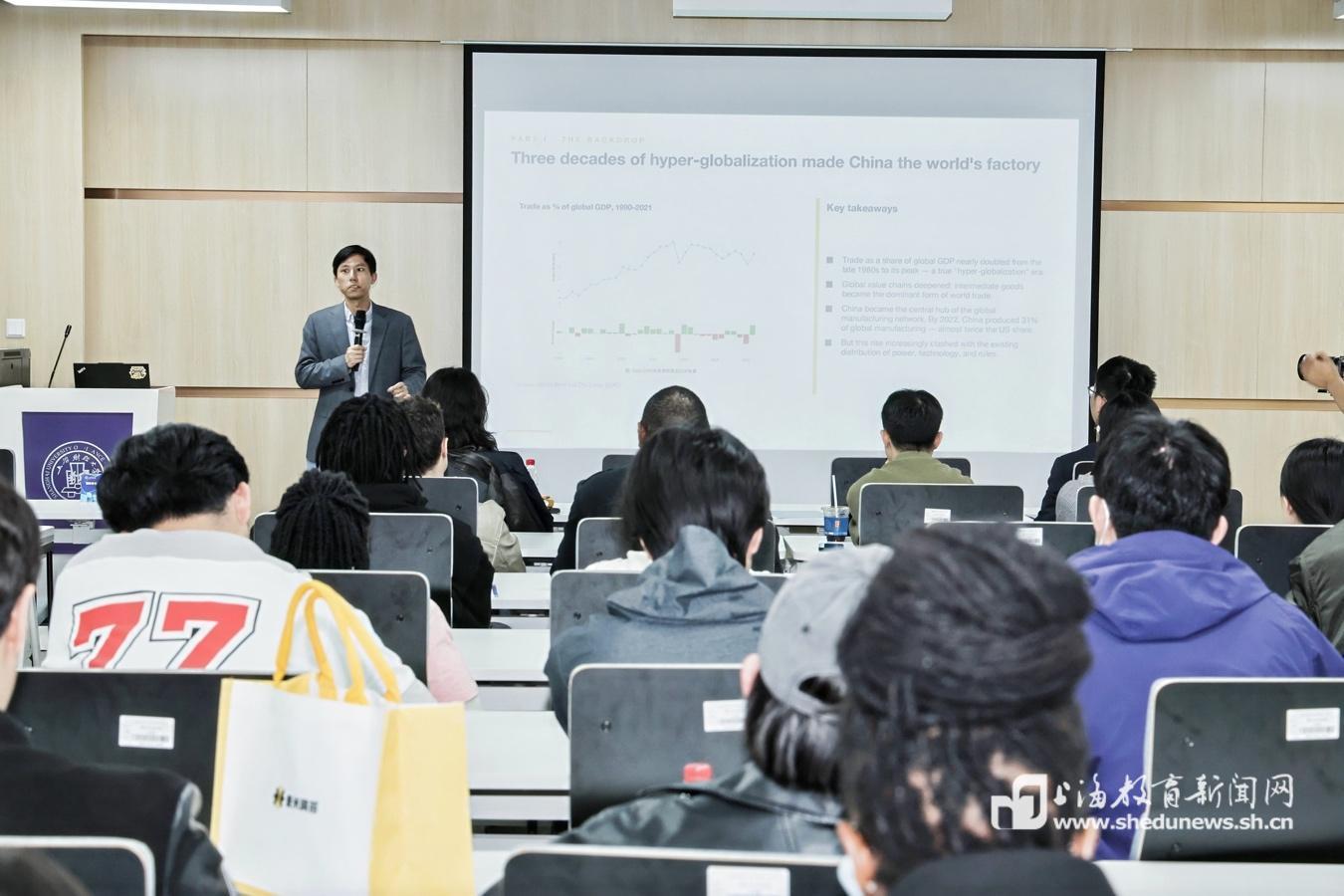本网讯(记者 程媛媛)4月28日,“国际青年学者论坛:数智时代的国际贸易”主题学术沙龙在上海财经大学举行,40余名中外师生齐聚一堂,聚焦数智时代跨国商业融合与经贸交流开展深入研讨。
