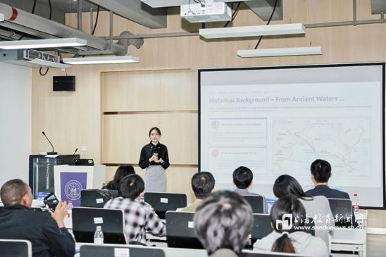在学生主题分享环节,两位上财青年学子展现了扎实的学术素养和开阔的全球视野。马来西亚硕士研究生留学生Chang Jia Yi结合中马海上贸易的历史积淀与当下数智化发展现状,深入剖析了数智化技术对跨境贸易的重塑作用,提出了中马数智化海上贸易合作路径,展现了对两国商业融合的深刻思考。博士研究生张森浩结合商科专业知识,系统探讨了人工智能辅助决策在企业海外扩张中的应用场景与核心价值,分析了数智技术在提升企业海外布局中的科学性与高效性。