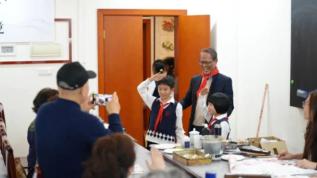 活动中,孩子们郑重地为爷爷奶奶系上鲜艳的红领巾,并肩参观学习环境、欣赏书画佳作,在一老一小的相视一笑与亲切互动中,温情满满、爱意流淌,勾勒出最美的代际和谐画卷。