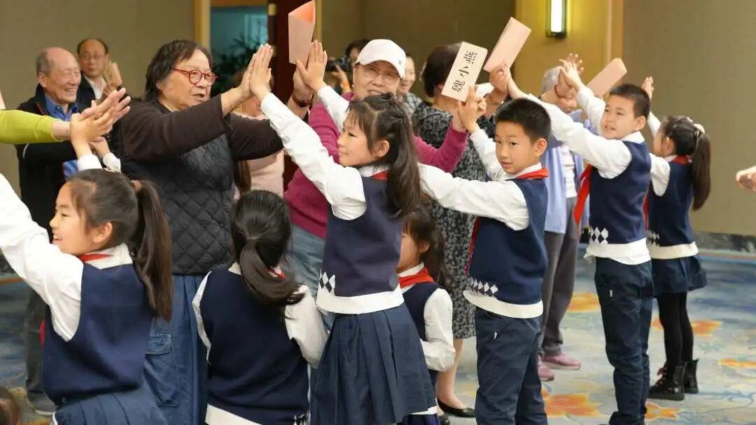 老干部大学、老年大学的银发学员们精神矍铄、风采昂扬,通过经典合唱、学习故事分享、情景演绎等形式,生动诠释“活到老、学到老”的终身学习理念,传递乐观向上、乐学善为的时代风采。银发学员们自身丰富的人生阅历和智慧成为宝贵的精神资源。他们通过讲述经历故事、传授传统技艺,潜移默化地传递家国情怀与优良品德,帮助孩子们系好“人生第一粒扣子”。同时,与纯真孩童的互动也为两校学员们带来情感慰藉与价值感重塑,让他们在“老有所为”中收获活力与快乐,实现生命历程的积极延续。
