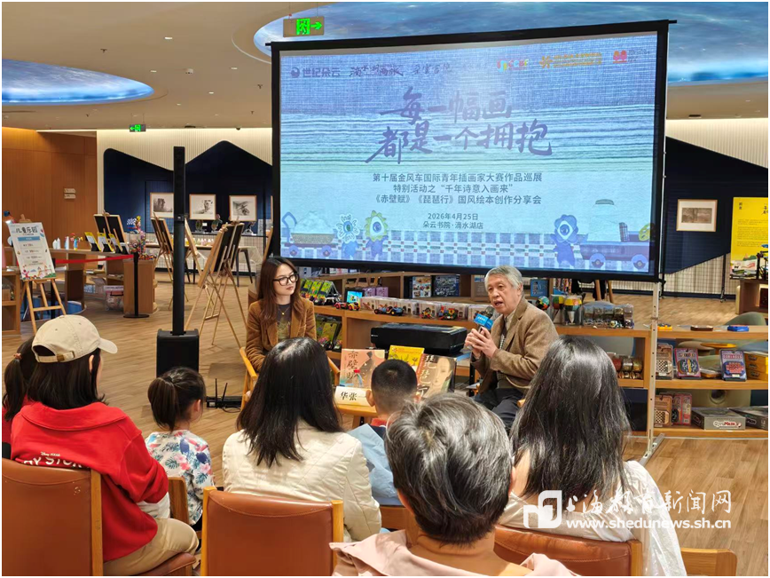 同日,朵云书院·滴水湖店古韵流芳。2025金风车插画大赛入围奖得主华张与资深绘本编辑费嘉,围绕《赤壁赋》《琵琶行》国风绘本开展创作分享。二人以精美插画为载体,结合文本深度解读,带领读者穿越千年,领略古诗词中的画意诗情,推动中华优秀传统文化的创造性转化与创新性发展。
