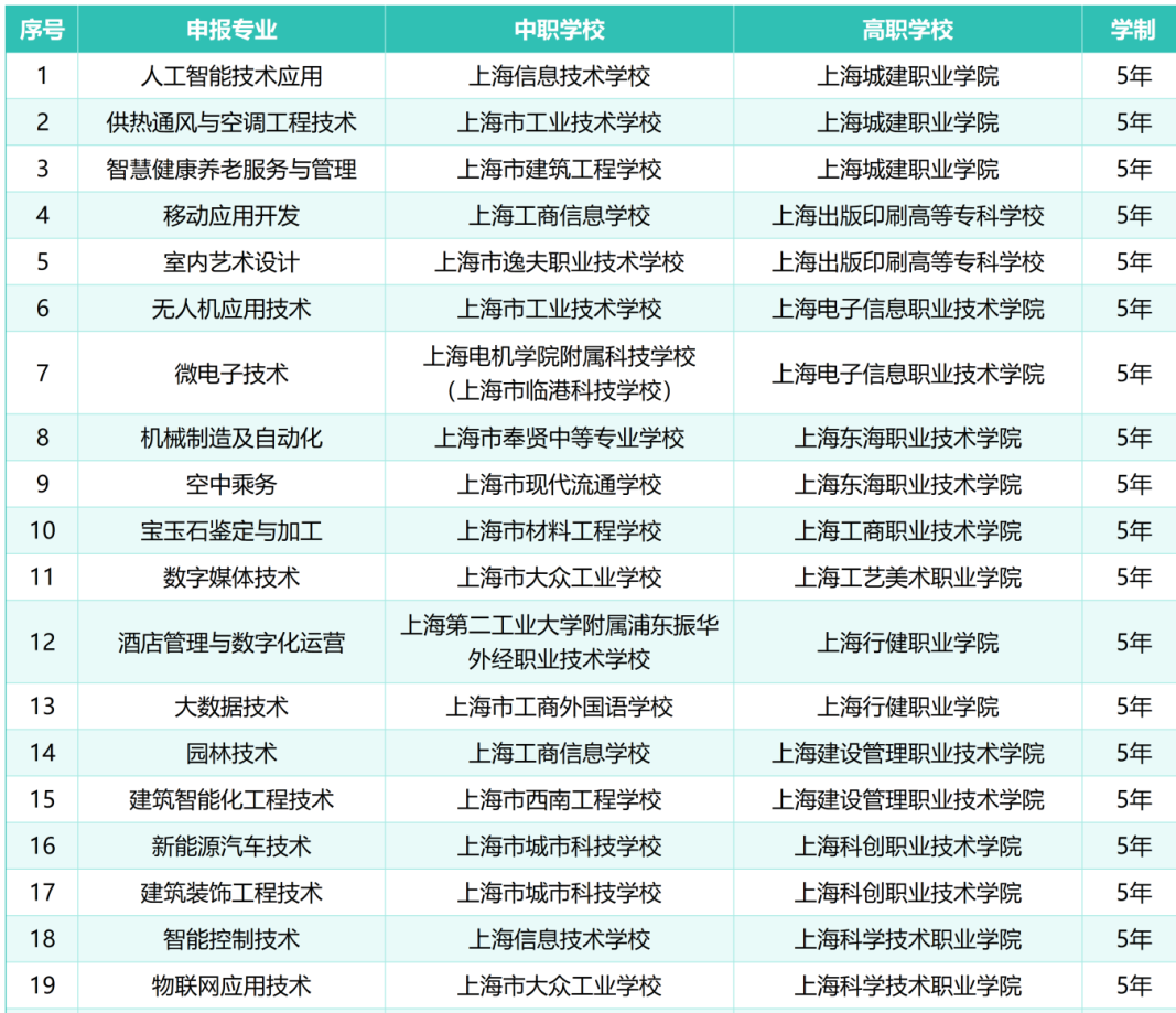 经学校申报、专家评议及市教委核定,同意2026年增设上海信息技术学校与上海城建职业学院联合举办的人工智能技术应用等40个中高职教育贯通培养模式专业。