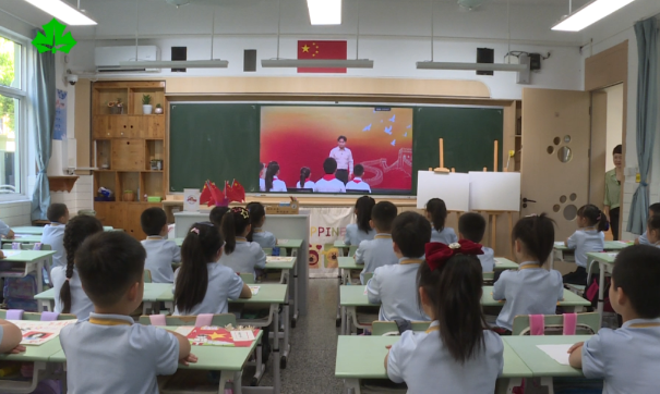 在浦东新区张江高科实验小学,同学们跟随教室里播放的课程内容,重回烽火岁月,聆听英雄故事。小学课程“众志成城”以上海为起点,从一段日军轰炸上海南站的影像资料为开篇,再现那段民族危亡的艰难岁月。