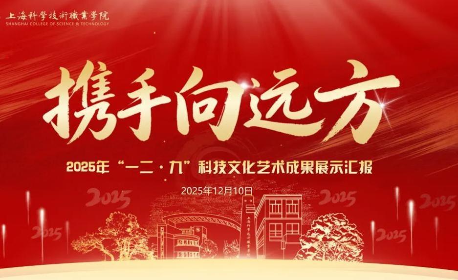 上海科学技术职业学院2025年“一二·九”科技文化艺术成果展示汇报在学校报告厅举行。本次活动以“携手向远方”为主题,纪念“一二·九”运动九十周年,传承爱国主义精神,集中展示一年来学校在科技、文化、艺术育人方面的丰硕成果。