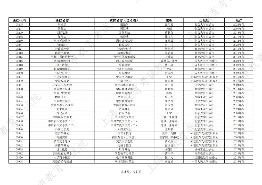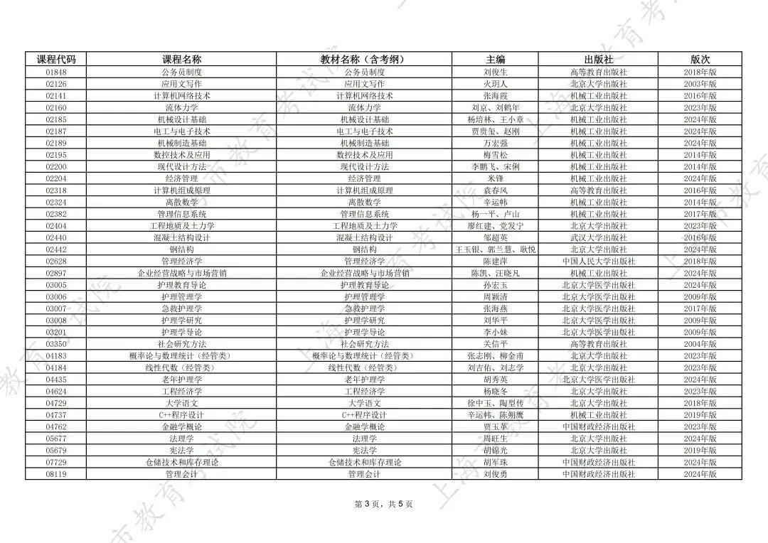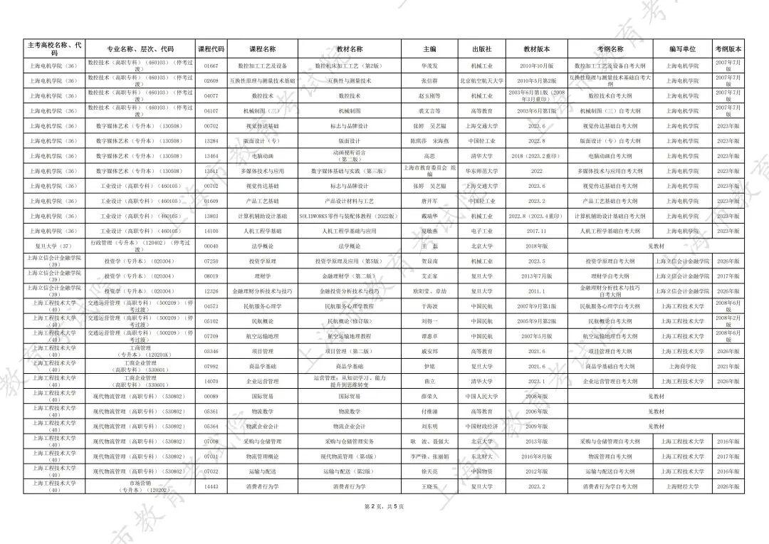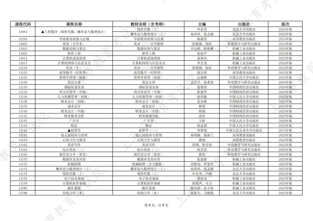 2026年4月上海市高等教育自学考试全国统考和市级统考课程教材考纲书目表公布,详见↓
