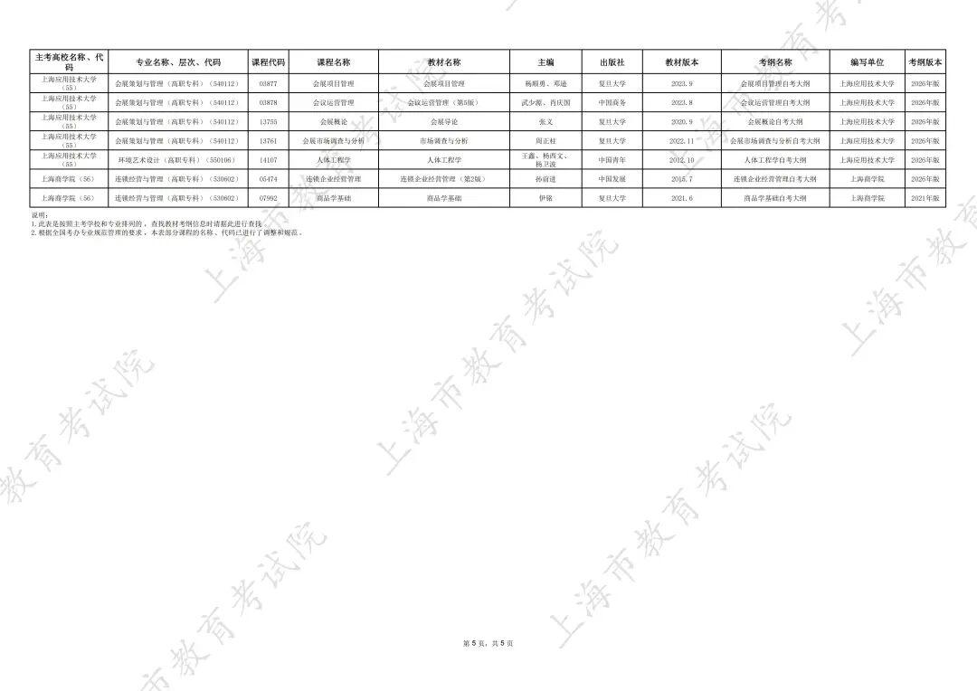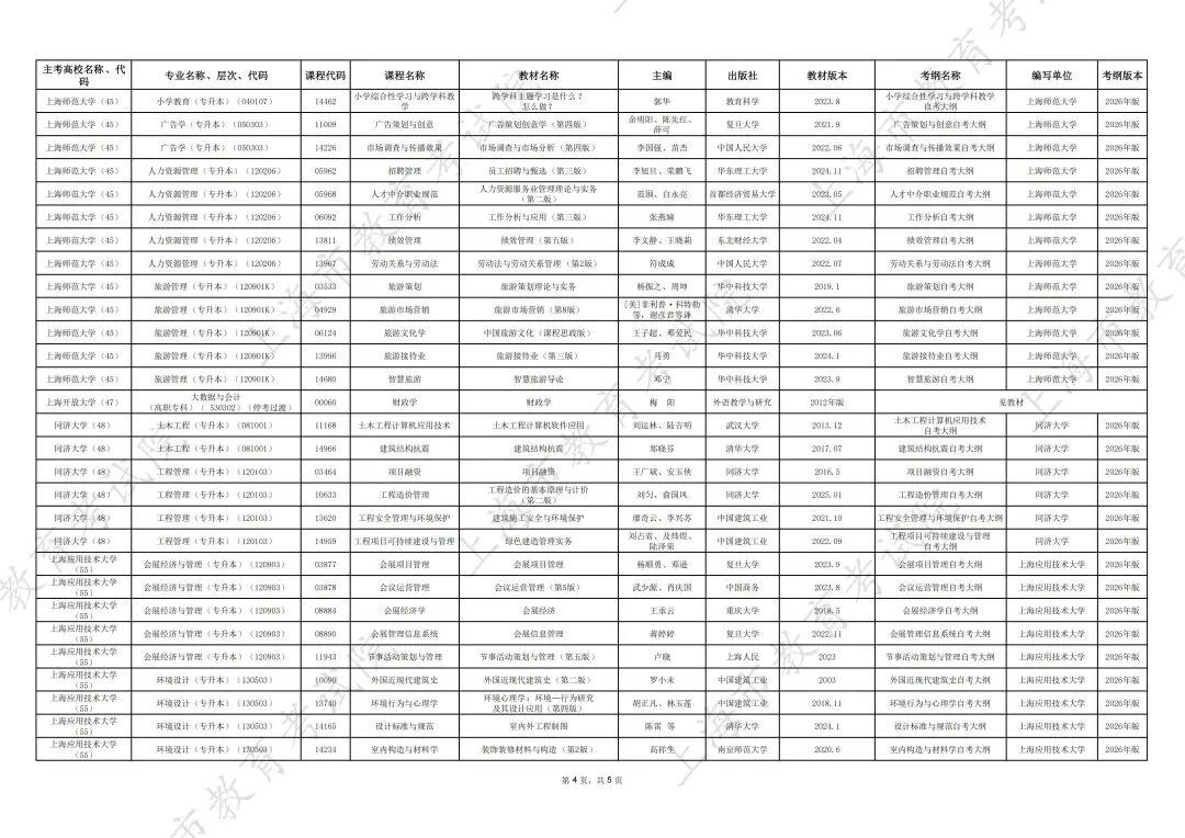 自考|沪2026年4月高等教育自学考试教材考纲书目表公布