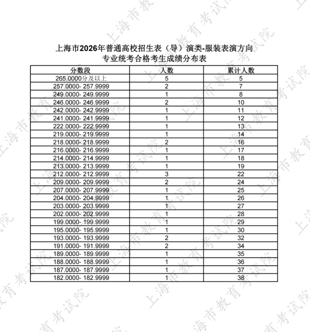 根据上海市教育考试院《关于印发<上海市2026年普通高校艺术类专业报名考试实施办法>的通知》(沪教考院高招〔2025〕20号)的文件要求,经审定,上海市2026年普通高校招生艺术类专业统考合格线如下: