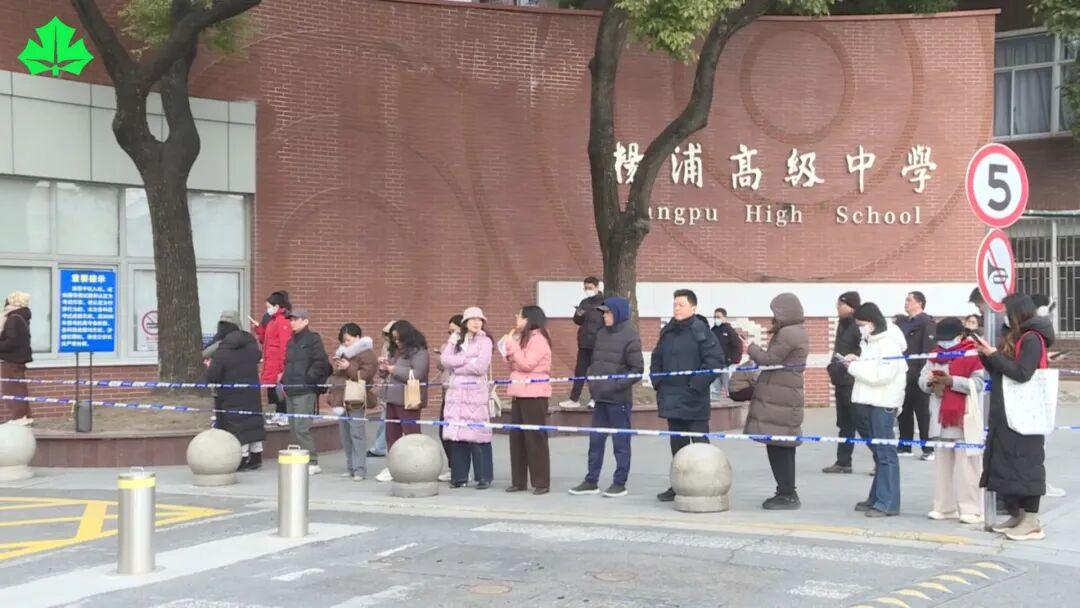 在上海市杨浦高级中学考点外,寒风中已聚集了不少家长。他们有的轻声交谈,有的默默注视考场方向,眼神中满是关切与期待。随着外语笔试结束铃声响起,考生们陆续走出考场,与等候的家人分享着考试感受。
