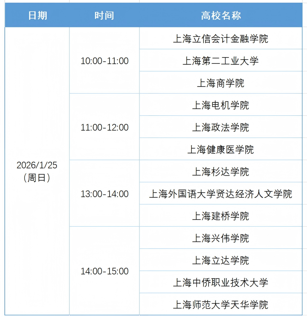 1月24至25日,上海市教育考试院、上海教育报刊总社学生媒体发展中心《上海中学生报·高招周刊》将联合部分春招试点院校举行“2026上海高招联播——春招政策解读及志愿填报”宣传活动。