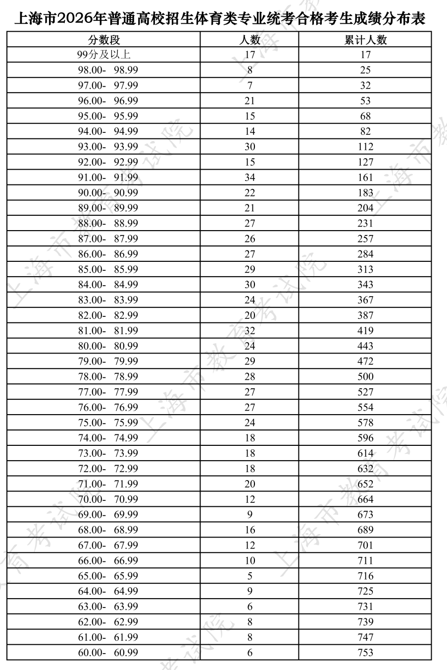 高招|上海市2026年普通高校招生体育类专业统考成绩及合格线公布