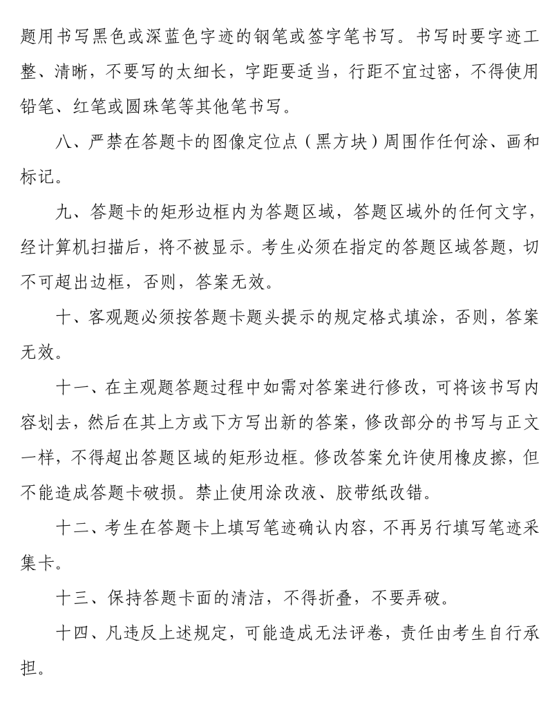 四、考生迟到15分钟后不准进入考点参加当次科目考试,交卷出场时间不得早于每科目考试结束前30分钟。
