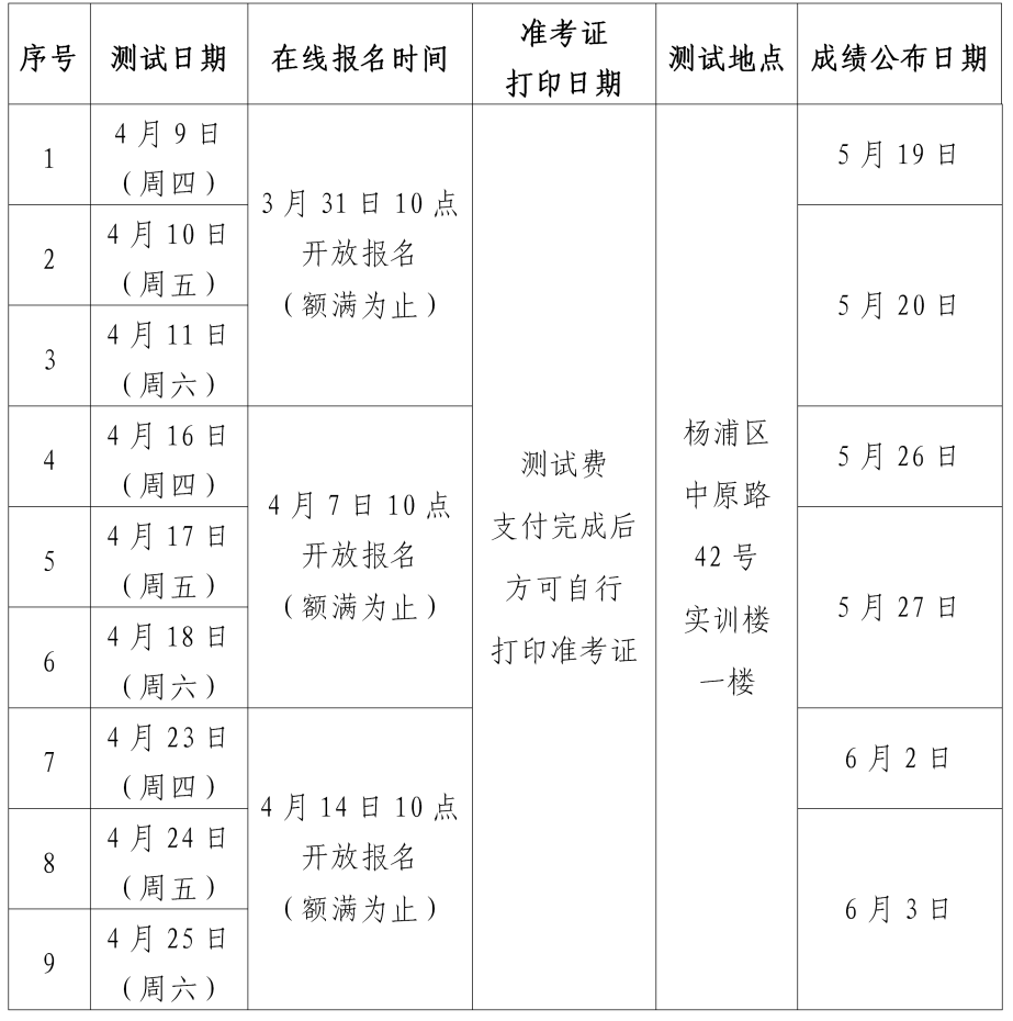 考生提交报名信息后,个人信息及测试日期均不可更改,具体报到时间请以准考证为准。