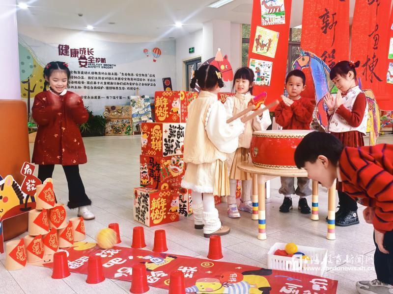 在陈伯吹实验幼儿园,孩子们在精心创设的环境中感受新年喜气。园方以《赛马曲》为载体,引导幼儿在感知理解、自主创新中,体会龙马精神与中华民族的气韵,在欢笑声中积蓄前行力量。