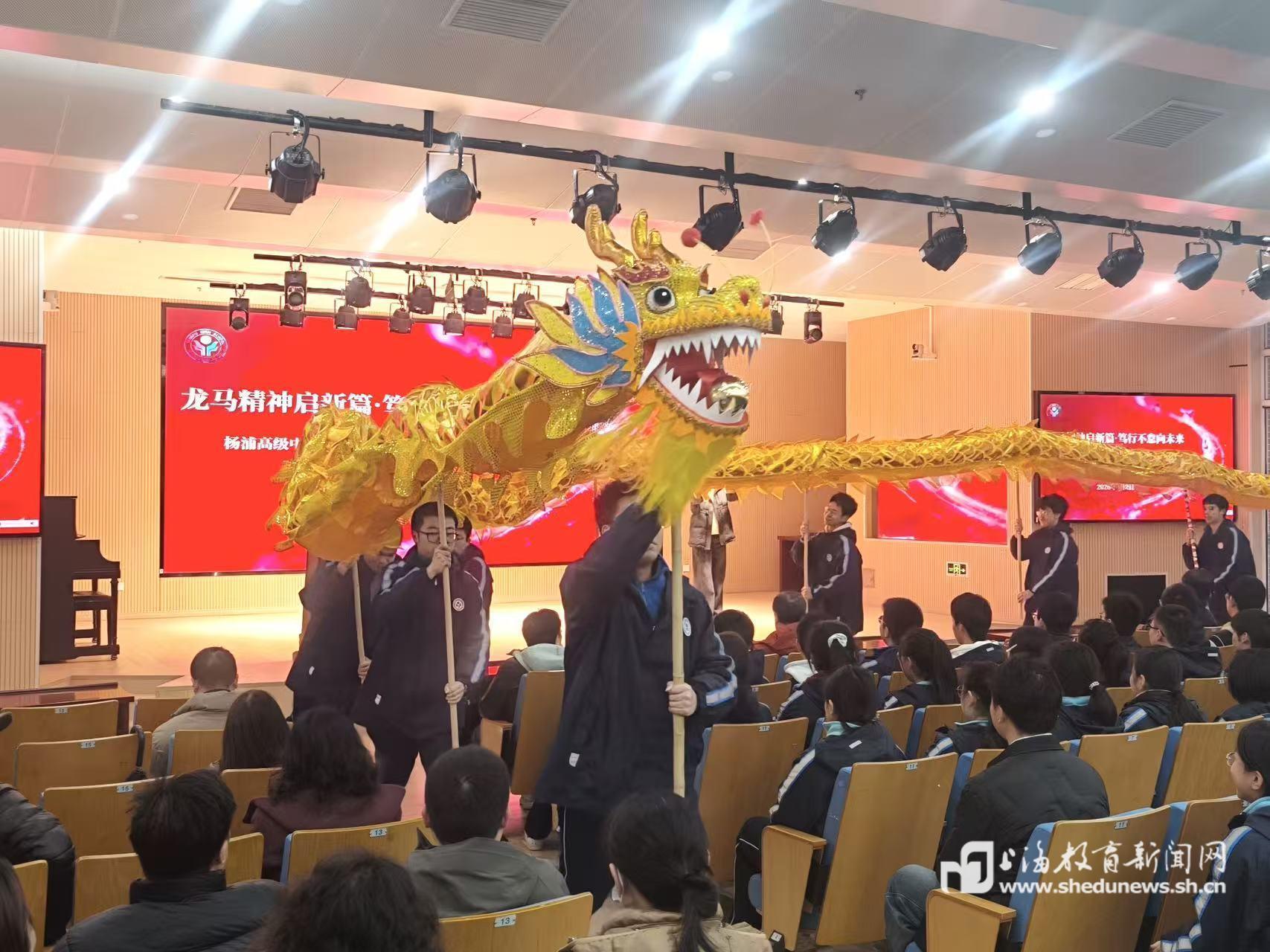 杨浦高级中学则以舞龙表演点燃开学典礼,金龙翻飞间展现学子蓬勃朝气,寓意“龙马精神”代代相传;王伟副校长以“乘骐骥以驰骋 迎时代以自强”开讲第一课,校园内“年味”主题摄影展同步亮相,让学子在审美创造中厚植家国情怀。